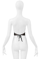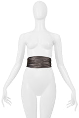 Resurrection Vintage is thrilled to present a Maison Martin Margiela grey satin jabot with black velvet ribbon featured at the 1989 collection, the jabot can be worn in a multitude of ways such as a top, choker, belt, or bracelet, has velvet tie strings at the back, signature four stitch label at the center front, and a wrinkled effect.