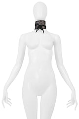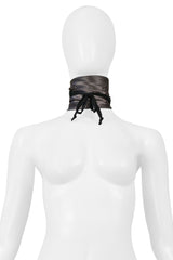 MAISON MARTIN MARGIELA GREY SATIN JABOT WITH BLACK VELVET RIBBON