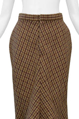 Resurrection Vintage is excited to offer a vintage Junya Watanabe for Comme des Garcons brown plaid tween flared straight skirt with a bum pack on the back.