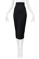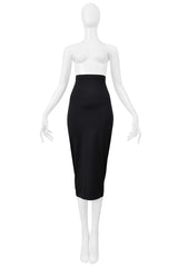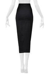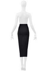 Resurrection Vintage is excited to present a vintage Romeo Gigli charcoal high-waisted skirt, featuring a fitted silhouette, below the knee length, and high-waisted