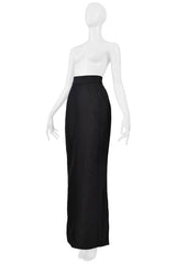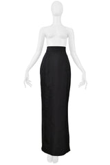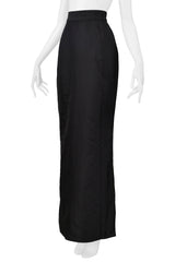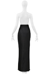 Resurrection Vintage is excited to offer a vintage Vivienne Westwood Gold Label black evening skirt from 1997, featuring a high waist, trumpet silhouette, hook-and-eye closures, slightly flared hem, and an ankle-length design.