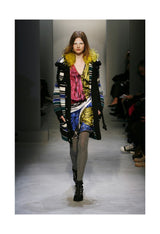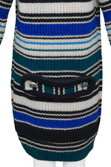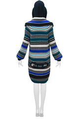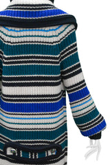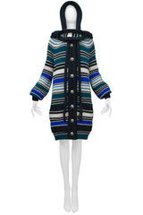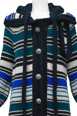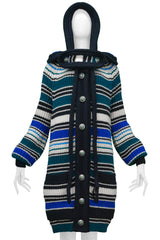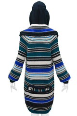BALENCIAGA BLUE, WHITE, & GREEN STRIPED HEAVY KNIT HOODED SWEATER 2007