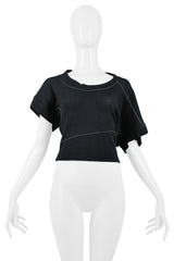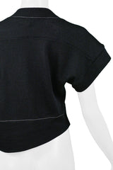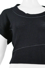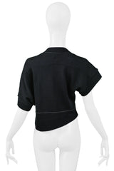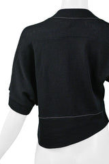 BALENCIAGA BLACK ASYMMETRICAL SWEATER WITH WHITE STITCHING 2002