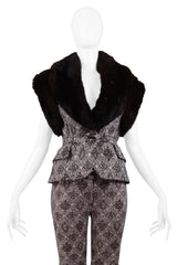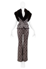 GIANFRANCO FERRE BROWN FUR PRINTED VEST & PANTS ENSEMBLE 2006