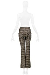GIANFRANCO FERRE BROWN LOGO PANTS WITH LEATHER TRIM 2006
