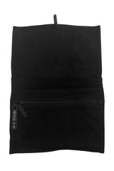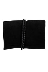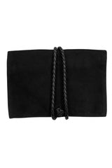 HELMUT LANG BLACK SUEDE FOLD OVER CLUTCH BAG WITH ZIPPER & BRAIDED LEATHER STRAP 2005