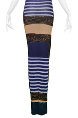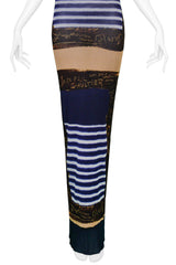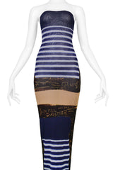 JEAN PAUL GAULTIER FRENCH NAUTICAL STRIPED MESH DRESS WITH SIGNATURE PRINT 2001
