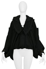 Resurrection Vintage is excited to offer a vintage Junya Watanabe for Comme des Garcons black deconstructed jacket featuring a double collar, military details, exposed zipper, oversized sleeves, and an easy body.