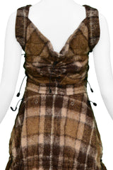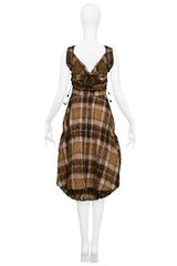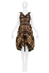 JUNYA WATANABE BROWN PLAID WOOL DRAWSTRING DRESS 2005