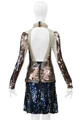 PRADA GOLD & NAVY METALLIC ROUND PAILLETTE SKIRT ENSEMBLE 2002