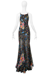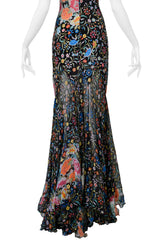 ROBERTO CAVALLI BLACK FLORAL EMBROIDERED PRINT SILK DRESS AW 2004