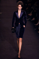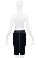 YVES SAINT LAURENT BY TOM FORD BLUE VELVET SKIRT WITH BOW 2002
