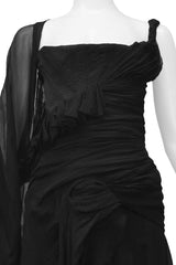 ALEXANDER MCQUEEN BLACK "IRERE" COLLECTION CHIFFON CORSET DRESS 2003