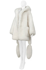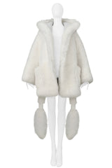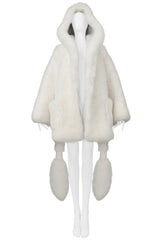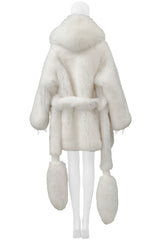 Resurrection Vintage is excited to offer a beautiful Bottega Veneta by Daniel Lee 100% White Shearling Lamb Fur featuring an oversized fit, 100% leather inner lining, a puffy fur belt with tails, a hood, and deep side pockets.