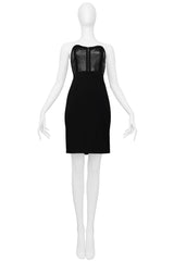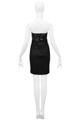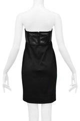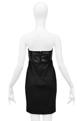 GEOFFREY BEENE BLACK LEATHER & WOOL STRAPLESS DRESS