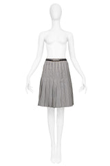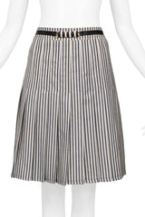 CELINE BLACK & WHITE STRIPE BOX PLEAT SKIRT WITH HARDWARE