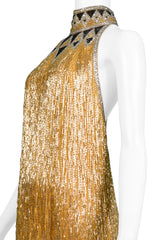 BOB MACKIE GOLD & BLACK DECO INSPIRED BEADED DRESS 1980S