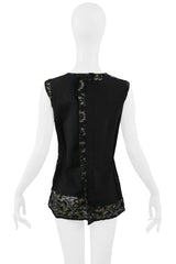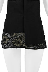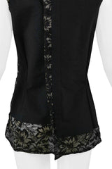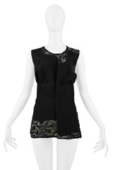 Resurrection Vintage is excited to offer a vintage Comme des Garcons black woven top featuring lace insets, high round neckline, deconstructed bodice, darts, and hip length. From the 1997 collection.
