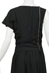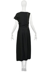Resurrection Vintage is excited to offer a vintage Comme des Garcons black & taupe rayon panel gown featuring asymmetrical sleeves, boat neckline, contrasting panels, full skirt, and gown length. Circa AW 1997.