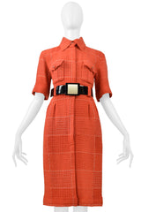 CHANEL BY KARL LAGERFELD RED TWEED DAY DRESS WITH FANCY BELT 2007