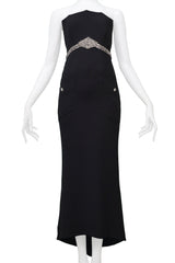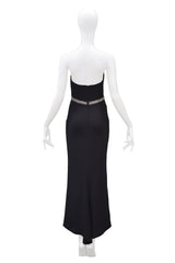 CHANEL BLACK CORSET EVENING GOWN WITH RHINESTONES 1997