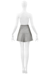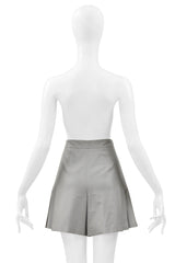 CHANEL GREY PLEATED LEATHER WALKING SHORTS