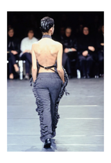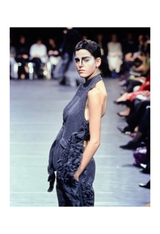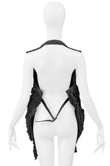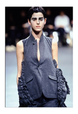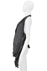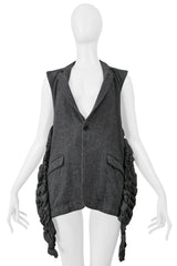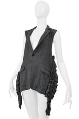COMME DES GARCONS GREY WOOL VEST WITH RUFFLES AND OPEN BACK AND LEATHER STRAP 2000-2001