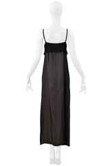 Resurrection Vintage is excited to offer a vintage Comme des Garçons black tank dress with a wool top from the Fall 2000-2001 collection, featuring a tie detail under the bust, a semi-sheer body, a straight and flowy silhouette, and an ankle-length design.