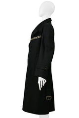 COMME DES GARCONS BLACK DOUBLE BREASTED DOUBLE COAT WITH CHAIN DETAIL 2000-2001