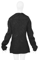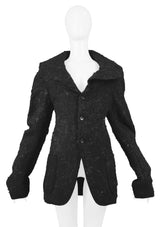Resurrection is pleased to offer this vintage Comme des Garcons charcoal grey boiled wool three-button jacket with oversized double-layer collar, extra long sleeves, and pockets at hips.
