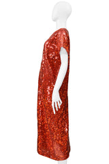 Resurrection Vintage is excited to offer a vintage Comme des Garçons red sequin cocktail dress featuring a V-neckline, asymmetrical sleeves and hem, an easy body, and below-the-knee length.