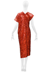 COMME DES GARCONS RED SEQUIN ASYMMETRICAL COCKTAIL DRESS 2000