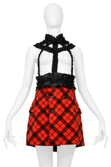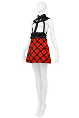 COMME DES GARCONS RED VELVET & BLACK PLAID MINI DRESS WITH RIBBON BRACES 2008