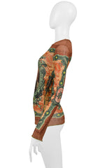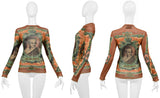 JEAN PAUL GAULTIER MULTICOLOR PORTRAIT & "MONEY" PRINT MESH TOP 1994