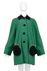 MOSCHINO GREEN SWING COAT WITH VELVET COIN PURSES