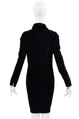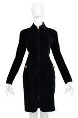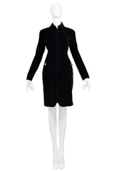 MOSCHINO BLACK VELVET ZIP COAT DRESS WITH GOLD BALLS