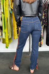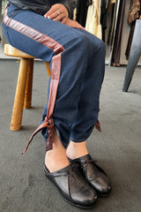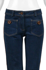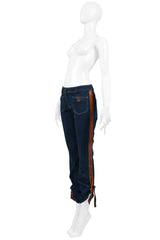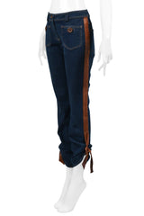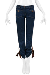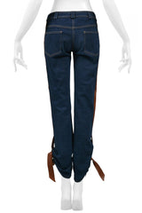 CHRISTIAN DIOR BLUE DENIM JEANS WITH LEATHER TRIM & TIES 2005