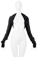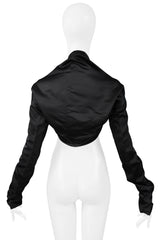 Resurrection Vintage is excited to offer a vintage Dolce & Gabbana black satin shrug featuring drop shoulders, elongated sleeves, and cropped body.