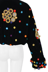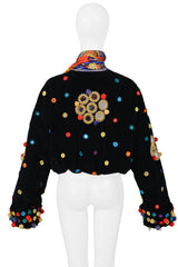 DOLCE BLACK VELVET AND MULTICOLOR POM POM SCARF JACKET 1992