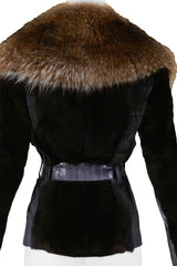 Resurrection Vintage is excited to offer a vintage Dolce & Gabbana dark brown mink fur jacket featuring a dramatic oversized brown fur collar, leather waist belt, and flared sleeves with leather inset panel.