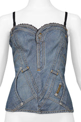 DOLCE & GABBANA JEAN DENIM BUSTIER TOP WITH LACE TRIM