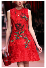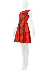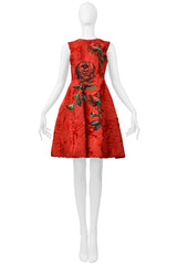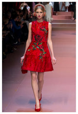 DOLCE & GABBANA RED FUR DRESS WITH ROSE APPLIQUES 2015