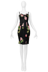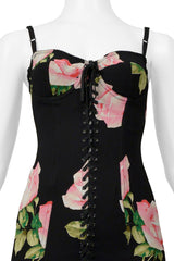 DOLCE & GABBANA BLACK CORSET DRESS WITH ROSE PRINT