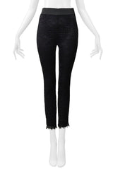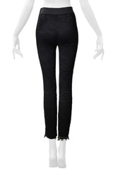 Resurrection Vintage is excited to offer a pair of Dolce & Gabbana black lace leggings featuring floral lace with scalloped edges, an elastic waistband, a side zipper, black rayon lining, and ankle zippers.