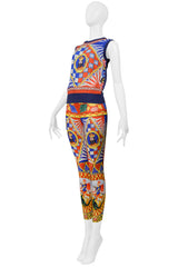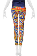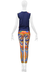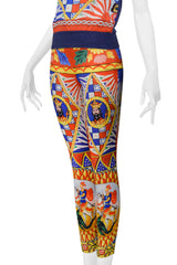 Resurrection Vintage is excited to offer a Dolce & Gabbana carretto king and queen top and pants ensemble. The top features a round neck, ribbed detailing, graphic of a king in the center, and sleeveless. The pants display the carreto print throughout, graphic of a king placed on each thigh, a highwaisted fit, ankle length, and have an elastic waistband.