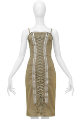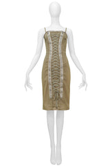 DOLCE & GABBANA KHAKI LACE UP CORSET DRESS WITH REFLECTIVE TRIM