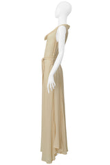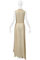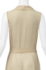 DRIES VAN NOTEN BEIGE & ORANGE CHIFFON POLKA DOT MAXI DRESS 2003