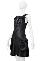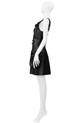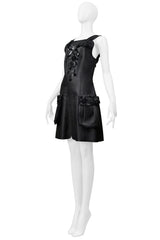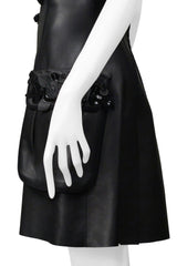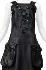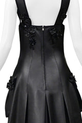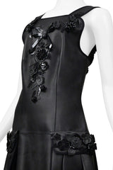 FENDI BY KARL LAGERFELD BLACK LEATHER DRESS WITH FLORAL APPLIQUE 2017