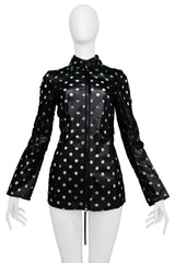 GIANFRANCO FERRE BLACK LEATHER CUT-OUT DOT JACKET