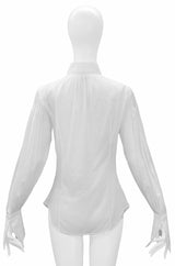 Resurrection Vintage is excited to offer a vintage Gianfranco Ferre white cotton shirt featuring decorative tassels, button front, folding collar, long sleeves, and large cuffs.